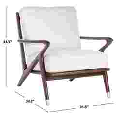 Grab a cocktail, relax and unwind in modern style with the sophisticated Lumisle mid century accent chair. Designed to highlight its sleek retro angles, it's finely crafted with luxurious cream linen blend upholstery and real wood with rich brass capped front legs. Wipe up spills immediately and avoid common hazards such as hot dishes, harsh solvents, and abrasives. Cleaning should be done with a soft lint free cotton cloth dampened with water.