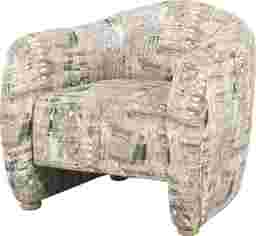 This chair is upholstered in a durable polyester fabric designed for daily use. To preserve the vibrancy of the patterned design, our care guidelines recommend spot cleaning with water only. For general maintenance, we suggest regular light vacuuming or dusting with a soft cloth to prevent debris from settling into the fabric fibers.