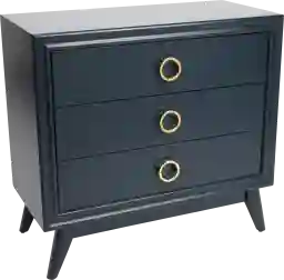 Standing confidently or tucked into a nook, the Lylaraine accent cabinet has flared legs for stability and style. Add this piece to a living space or your bedroom with its deep blue poplar wood finish to add depth and intrigue from across the room. Three drawers are all accented by round gold finish pulls that set off the smoky blue perfectly. Customer assembly is required.