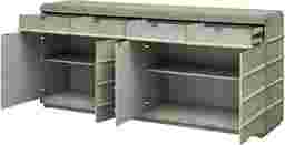 Need a statement piece for a dining or living room Look no further than this two-toned Lytleton credenza featuring four drawers and ample cabinet space to hold all of your dinnerware or electronics and consoles. This rustic plank-style piece makes a great finishing touch for any room while offering long-lasting durability you can trust. Customer assembly is required.