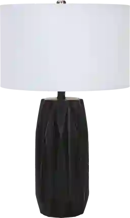 This lamp’s geometric silhouette serves as a sculptural focal point that anchors contemporary and modern spaces. Our styling experts recommend pairing black table lamps with dark wood finishes or metal-accented furniture to create a cohesive look. In rooms with lighter, neutral palettes, the black ceramic base provides a sophisticated high-contrast element that adds depth and visual interest to the space.