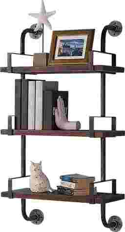 The Lynnelle industrial 3-piece floating wall shelf is a novel piece, perfect for enhancing the aesthetic flare of any contemporary living space. This beautiful modern shelf is composed of three walnut-finished, pinewood sections, held together, and accented by gray coat finished metal piping. This combination of materials is as durable as it is novel, allowing for the storage of a wide variety of items. Create a small library of books, display family photos, or use the Lynnelle as a convenient towel rack in your kitchen or bathroom, the possibilities are endless. The Lynnelle shelves are 40 inches wide. Customer assembly is required.