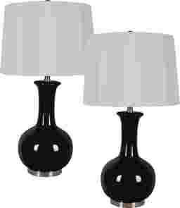 The Mabie Court table lamp is a favorite for those looking for a splash of contemporary. Finished in glassy black and white silk like shade. Comes as a set of 2, pair this perfect set in your living room or bedroom! Some customer assembly required.