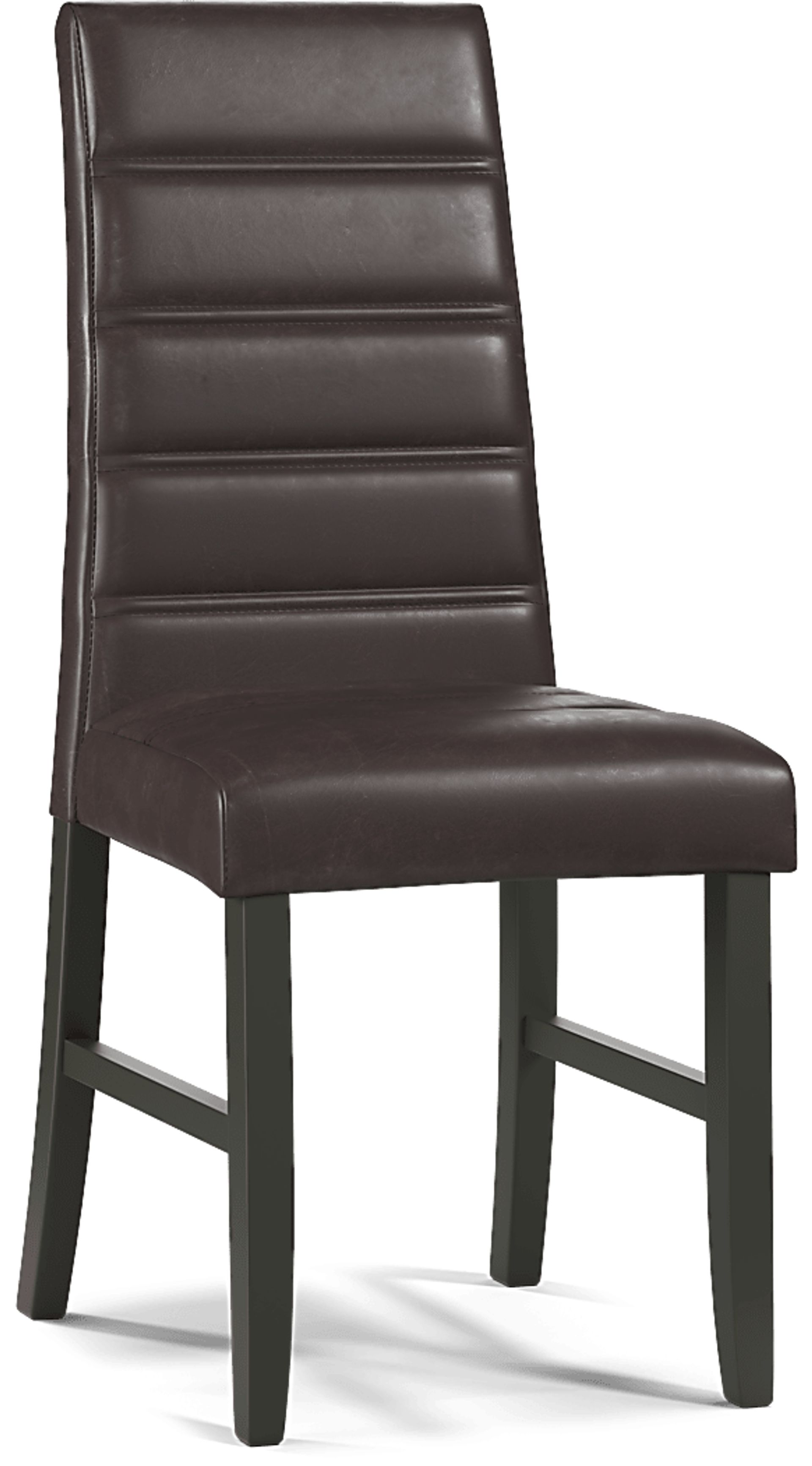 Multiple horizontal seams stitched into the durable, rich brown UltraHyde fabric give the Mabry dining chair's classic design a uniquely modern update. Dark wood legs contrast nicely with the warm shade of the upholstery, adding to the contemporary feel of this comfortable, padded chair.