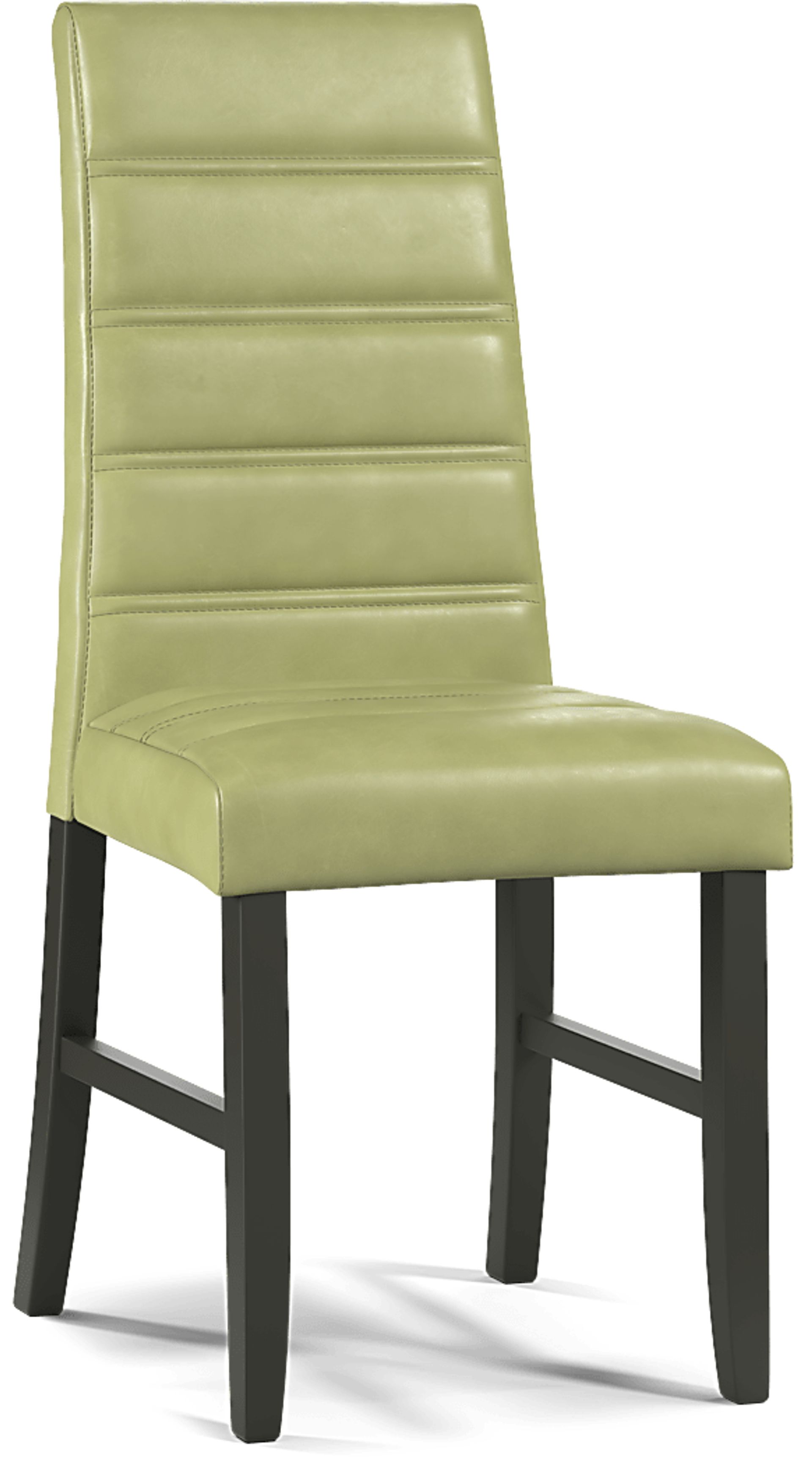 Multiple horizontal seams stitched into the durable, green UltraHyde fabric give the Mabry dining chair's classic design a uniquely modern update. Dark wood legs contrast nicely with the color of the upholstery, adding to the contemporary feel of this comfortable, padded chair.