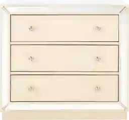 Designed for a minimalist interior in need of luxe detail, this modern 3-drawer accent cabinet is an instant focal point. Ideal for discreet living room storage, its antique beige hue is complemented by nickel hardware and framed with a luxurious mirror finish. Customer assembly is required.