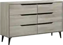 The Maclura 6-drawer dresser is the perfect addition to your bedroom. This dresser will add storage to your space along with contemporary style. Crafted of quality engineered woods for years of usage. The drawers feature unique cut-out handles and angled legs for a mid-century feel. Customer assembly is required.