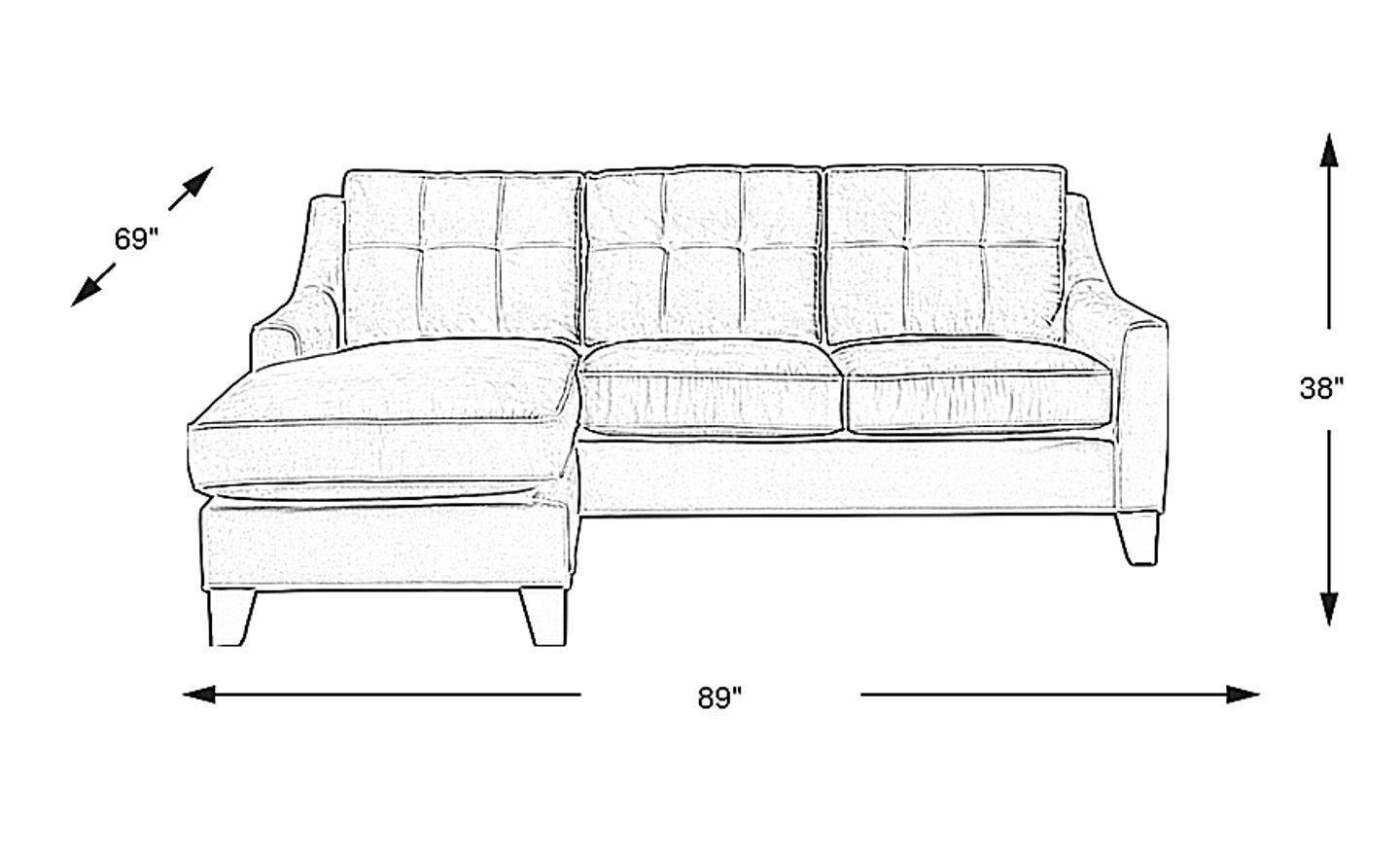 89"w"w x 69"d"d x 38"h"h