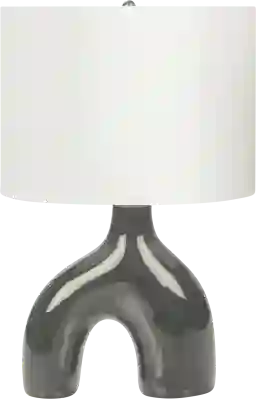 Add a fun and decorative element to your home with the stylish, mid-century inspired Madola Island Gray Lamp in dark gray ceramic with an elegant linen ivory shade. This decorative table lamp will brighten up any room with its contemporary and whimsical two-leg shape ceramic base and linen-blend fabric shade. A perfect size to place on an end or side table in your living room or office, or as a bedside lamp on your nightstand in your bedroom, this lamp will illuminate any space with a soft and inviting ambiance. Partial assembly may be required.