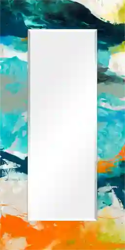 The Madria mirror is a free floating, tempered glassthat was inspired by the French technique of Verre Eglomise in which artist's literally painted the back of clear glass so that when viewed from the front the painting is brought to life under the depth of the glass. This piece of a beautiful colorful abstract takes that same tempered glass and displays a beveled mirror in front of it. Four strong steel hangers are attached to the back of the mirror for a quick and easy vertical or horizontal installation.
