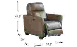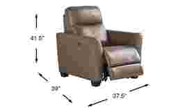 Harmony, comfort and modern elegance fill your room like a melodic symphony with the Maestro collection guiding every note and nuance with effortless flair. This contemporary dual power recliner features head and footrests that can be raised or lowered to any desired position. An integrated control panel on the outside of the piece has a USB port that makes charging to your mobile devices directly from the unit easy and convenient. Upholstered with top grain leather where the body touches in a brown mushroom color, the look wouldn't be complete without stylish radius arms and top-stitched outer seams that tailor the recliner to perfection. Upholstery: Top grain leather where the body touches. Polyurethane sides and backs.