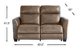 Harmony, comfort and modern elegance fill your room like a melodic symphony with the Maestro collection guiding every note and nuance with effortless flair. This contemporary dual power reclining loveseat features head and footrests that can be raised or lowered to any desired position. Integrated control panels on the outside of the piece have USB ports that make charging to your mobile devices directly from the unit easy and convenient. Upholstered with top grain leather where the body touches in a brown mushroom color, the look wouldn't be complete without stylish radius arms and top-stitched outer seams that tailor the loveseat to perfection. Upholstery: Top grain leather where the body touches. Polyurethane sides and backs.