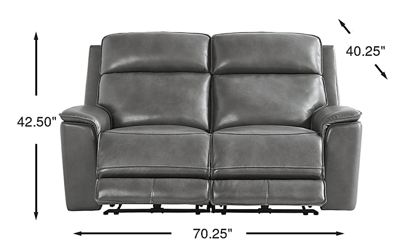 The luxury of a weekend retreat grounded in the familiar calm of home, the Magellan collection's inviting frame blends modern comfort with the refined ease of classic style. Confidently transitional, this loveseat is upholstered in smokey gray top grain leather where the body touches. Deep tufted backs and sumptuously padded track arms deliver cradle-like cushioning, while top-stitched seams accentuate the elegant curves and clean lines that define its handsome silhouette. Dual power reclining features adjustable headrest and footrest for personalized relaxation, along with USB ports on each control panel for added convenience. Upholstery: Top grain leather where the body touches and vinyl sides and backs. Accent pillow not included.