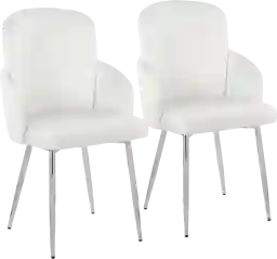 Absolutely. The cream color family and solid upholstery pattern act as a sophisticated neutral, making these chairs highly versatile. They pair exceptionally well with contemporary glass or metal tables, like the Tanrac I Chrome Dining Table, or can provide a soft, textural contrast to natural wood surfaces. Because they are sold as a set of two, they are perfect for flanking the head and foot of a table to create a curated, high-end look.