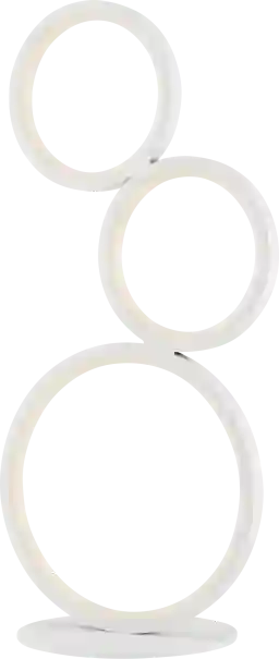 The Magna Circle lamp makes a modern statement on your living room end table or bedroom nightstand. It's made from three white metal rings in difference sizes to create an open loop-like silhouette for a distinctive look. The inner edge of the rings has an integrated LED light that creates a bright glow in your space. This lamp has a full range line dimmer switch, so you can adjust the lighting from day to night. It measures 17.25 tall with a 6 wide base, so it won't take up too much space on your table. Partial assembly may be required.