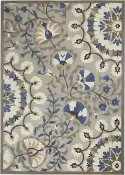 The sunny and sensational flat-woven indoor/outdoor Makisha rug is pretty, practical, and perfect for high-traffic areas. With its inviting contemporary design, tempting color palette and terrific texture, this multipurpose rug will afford an air of simple sophistication to any environment. Flat Woven and made of 100% polypropylene, this outdoor rug features soft cut pile and textural woven patterns in bursts of color sure to enliven any outdoor space. Designed with twisting vines and blooms in blue, cream and gray, this rug adds a festive touch of the tropics to your patio or deck. This rug is created from premium stain-resistant fibers for long wear, low maintenance, and a splendid texture.