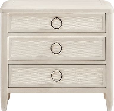A bedside essential designed to balance beauty, storage and a touch of seaside serenity, the Maldive nightstand keeps essentials close at hand while adding a breezy, coastal elegance to your space. Offering practical details like USB charging and three drawers for quick bedside storage, this piece features a gorgeous display of ash veneer work alongside neatly tapered feet. Crafted with front and back English dovetail joinery and smooth ball-bearing glides, the drawers are built for lasting strength and effortless everyday use. The drawer fronts are finished with woven detailing that blends coastal charm with polished sophistication. Classic metal ring pulls add just the right touch of gleam, while a pristine white finish keeps the silhouette light, fresh and timeless.