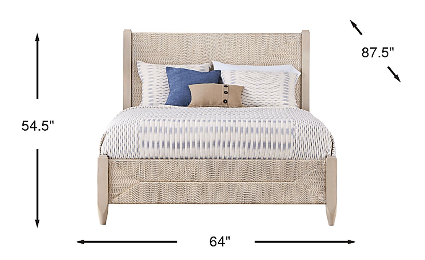With dimensions of 64"W x 87.5"D, this bed maintains a standard footprint for a queen frame. The pristine white finish and breezy coastal silhouette help prevent the piece from feeling heavy or bulky. This makes it an excellent choice for creating an open, airy feel in a smaller master bedroom or a city apartment where visual space is a priority.