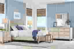 The Maldive bedroom is the perfect place to savor a quiet cup of tea and a good book before drifting off into a restful night's sleep. With a headboard and footboard featuring woven accents reminiscent of a well-loved wicker chair on a summer porch, the queen-size panel bed is as nostalgic as it is stylish, offering a clean, coastal-inspired silhouette that feels both timeless and inviting. What better way to complement the bed than with a pair of nightstands, each offering practical details like USB charging, three drawers for quick bedside storage and a spacious open shelf below. Finished with woven drawer fronts that echo the bed's texture, these charmers marry function with charm. The coordinating dresser's six roomy drawers are ideal for clothing, extra linens, and more, while the matching mirror completes the set with understated elegance. Pristine white finish and polished metal rings bring the entire collection together with details you'll treasure morning, noon and night. Mattress and foundation (if required) sold separately.