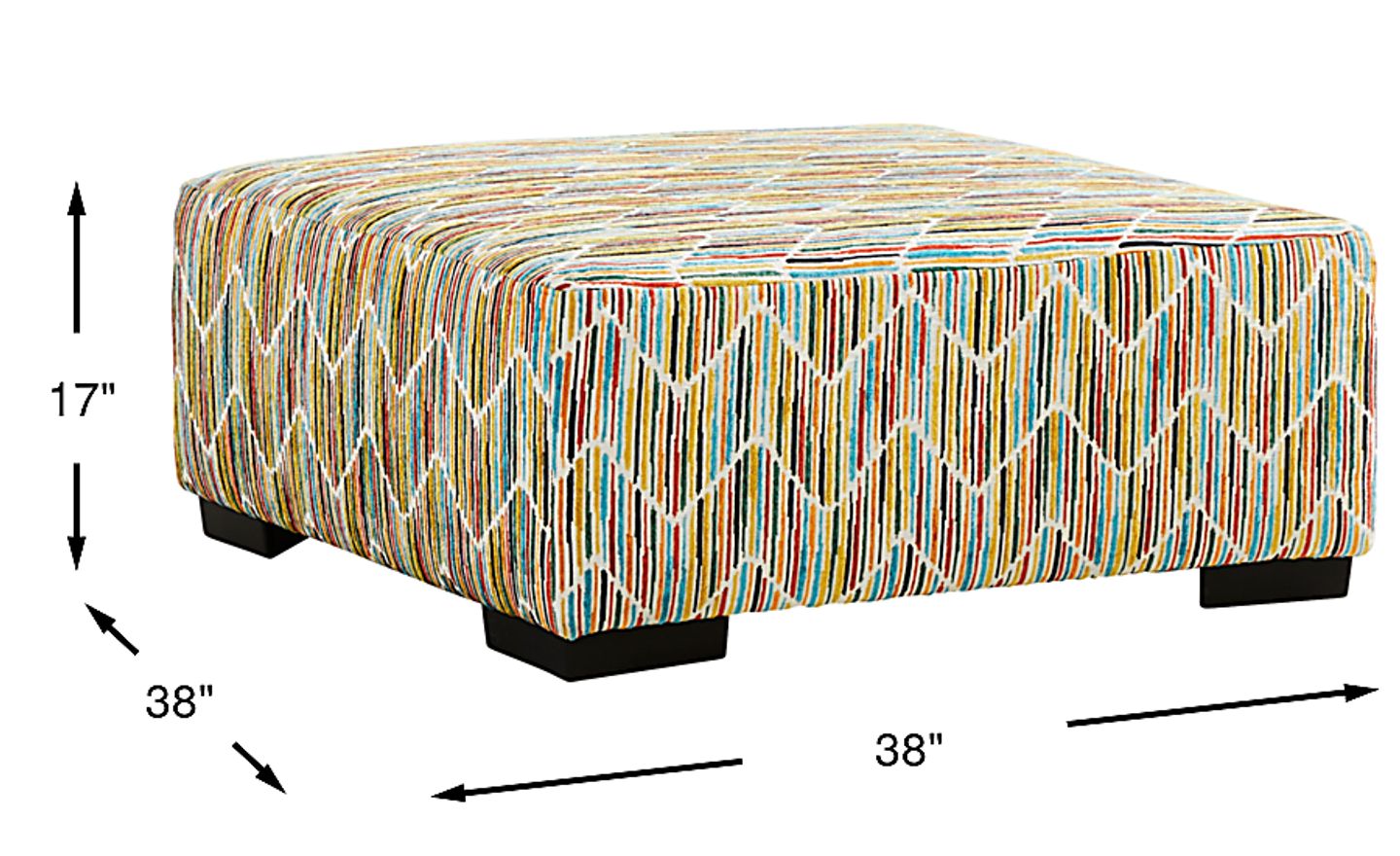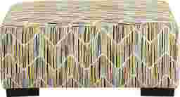 This ottoman is upholstered in 100% polyester, a synthetic fiber highly regarded in the furniture industry for its inherent durability and resilience. Polyester is less prone to staining and fading compared to natural fibers, making it an excellent choice for high-traffic family spaces. The multi-colored striped pattern is also strategically advantageous, as it effectively helps disguise minor wear or pet hair between cleanings.