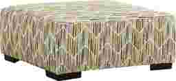 At the end of a long day when relaxation takes priority, a welcoming comfort waits within the Mallard Trace collection's easygoing style and sink-in seating. Upholstered in soft, textured fabric, this transitional ottoman features a square profile and clean tailoring that keeps the look polished. Colorful lined patterns of yellows, blues, oranges and ivory add a pop of personality. Square block legs in a black finish bring casual charm that feels effortless yet familiar. Upholstery: 100% polyester.