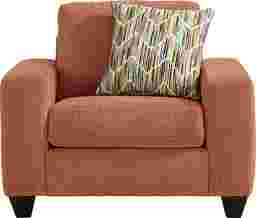 Not at all. Sunset-orange is a warm, transitional tone that serves as a vibrant focal point. For a harmonious look, we recommend pairing it with earth tones like beige, tan, or olive green. If you prefer a more modern, high-contrast aesthetic, this chair stands out beautifully against neutral grays or deep navy blue accents. Its transitional design—featuring a mix of modern track arms and classic pillow-back tailoring—allows it to bridge the gap between contemporary and traditional furniture styles.