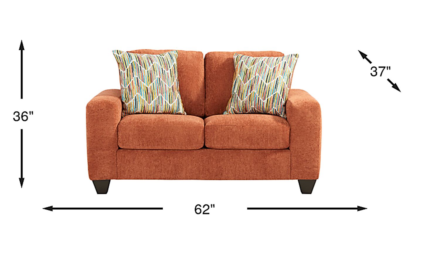 This loveseat is upholstered in 100% textured polyester, a material selected for its exceptional durability and low maintenance. Unlike more delicate natural fibers, polyester is highly resistant to stretching, pilling, and fading. The "sunset-orange" color family is not only a vibrant design choice but is also effective at hiding daily wear, making it a reliable investment for high-traffic living rooms.