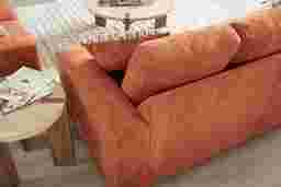 How can I style a sunset-orange sofa to match my existing decor?