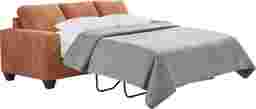 At the end of a long day when relaxation takes priority, a welcoming comfort waits within the Mallard Trace collection's easygoing style and sink-in seating. Upholstered in a soft, textured sunset-orange fabric, this transitional sofa features gently rounded track arms and deep seat cushions that invite you to settle in and stay awhile. Tucked away is a Sealy Royale sleeper mattress that easily transforms your living room into a peaceful guest room. Clean tailoring keeps the look polished, while the included accent pillows add a pop of pattern and personality. Subtly tapered legs in a black finish bring casual charm that feels effortless yet familiar. Upholstery: 100% polyester.