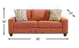 Sunset orange is a warm, transitional hue that serves as a sophisticated focal point. For a grounded, cozy atmosphere, our design guides recommend pairing this sofa with earth tones like beige, tan, or olive green. To achieve a more modern, high-contrast look, it pairs beautifully with cool grays or deep charcoal accents. The included patterned toss pillows are specifically curated to bridge these color palettes, making it easy to integrate the sofa into your current style.