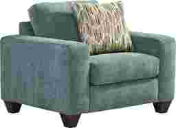 At the end of a long day when relaxation takes priority, a welcoming comfort waits within the Mallard Trace collection's easygoing style and sink-in seating. Upholstered in a soft, textured teal fabric, this transitional chair features gently rounded track arms and a deep seat cushion that invites you to settle in and stay awhile. Clean tailoring keeps the look polished, while the included accent pillow adds a pop of pattern and personality. Subtly tapered legs in a black finish bring casual charm that feels effortless yet familiar. Upholstery: 100% polyester.