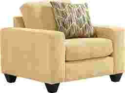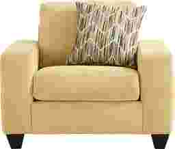 At the end of a long day when relaxation takes priority, a welcoming comfort waits within the Mallard Trace collection's easygoing style and sink-in seating. Upholstered in a soft, textured yellow fabric, this transitional chair features gently rounded track arms and a deep seat cushion that invites you to settle in and stay awhile. Clean tailoring keeps the look polished, while the included accent pillow adds a pop of pattern and personality. Subtly tapered legs in a black finish bring casual charm that feels effortless yet familiar. Upholstery: 100% polyester.