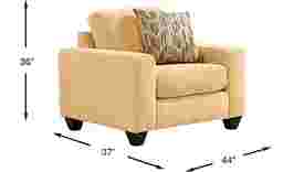 This chair measures 44"W x 37"D x 36"H, with a seat height of 20 inches. At 44 inches wide, it offers a generous "chair-and-a-half" footprint, providing a much deeper and wider seating area than a standard armchair. Before delivery, we recommend measuring your doorways and hallways to ensure the piece can be moved easily into your space.