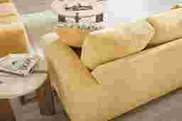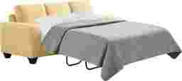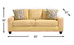 At the end of a long day when relaxation takes priority, a welcoming comfort waits within the Mallard Trace collection's easygoing style and sink-in seating. Upholstered in a soft, textured yellow fabric, this transitional sofa features gently rounded track arms and deep seat cushions that invite you to settle in and stay awhile. Tucked away is a Sealy Royale sleeper mattress that easily transforms your living room into a peaceful guest room. Clean tailoring keeps the look polished, while the included accent pillows add a pop of pattern and personality. Subtly tapered legs in a black finish bring casual charm that feels effortless yet familiar. Upholstery: 100% polyester.