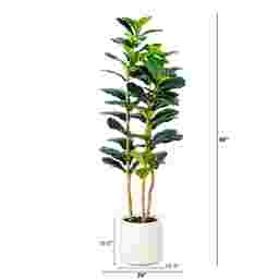 Bring a taste of the African landscape to your home with the most popular tree from the bunch, the Mallberry II green silk plant. Inspired by the lush jungle, you'll see the glossy, large leaves descend from two lifelike textured trunks. Crafted from high-quality materials, feel free to bend the branches to fit in your space Standing from a white planter, display in any area in need of a green touch. We love this piece in living rooms, bedrooms and home offices, all without the maintenance.