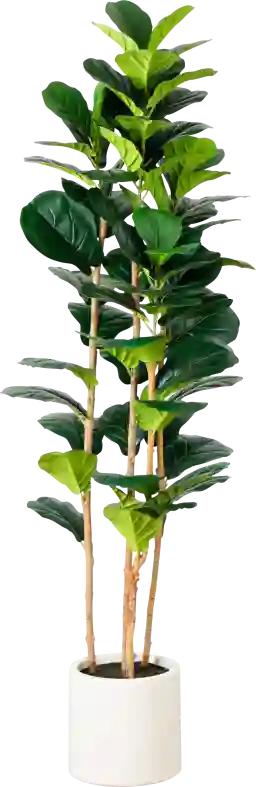 To ensure an authentic appearance, this plant features two lifelike textured trunks and large, glossy leaves inspired by the African landscape. The attention to texture on the stems and the varied height of the foliage help it blend seamlessly with live houseplants while maintaining a contemporary aesthetic.