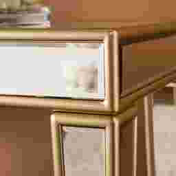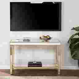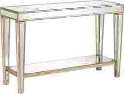 Red carpet star. Glam style Mallina console table transforms your space with the elegance and drama of classic Tinsel town. From clean lines to fully beveled mirrors, down to the tapered legs; this two-tone sofa table proves the dazzle is in the details. Top this multi use console table with entryway catch-all bowls in the hall or entertainment accessories in the dining room. Customer assembly required.