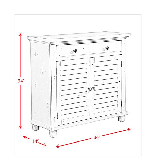 The Malquin off-white accent chest perfects the rustic, shabby chic look. This accent chest features shutter-like doors, as well as a top drawer for extra storage. An interior adjustable shelf allows you to customize and maximize your storage space. Customer assembly is required.