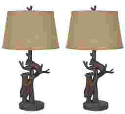 The Malta Avenue lamp, set of 2 features a life like mama bear and cub in a bronzed and black wood, topped with a burlap beige shade. This lamp is perfect for the cabin or the outdoor enthusiast in your family Complete with a 3-way switch. Partial assembly may be required.