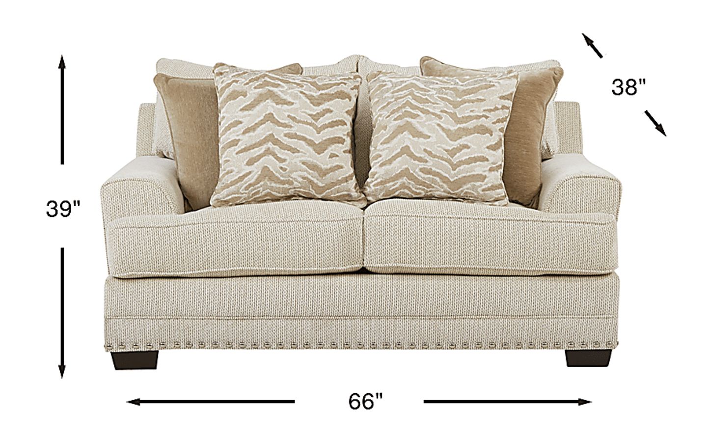 Drawing from contemporary styles, the Malvern loveseat offers chic seating for your space. Upholstered with woven chenille fabric, this piece is rendered in a versatile beige hue that matches any room decor. Welted track arms and a silver nailhead border along the base bring thoughtful detailing to complement its understated look. Accent pillows, included, come in solid brown and a bold, playful animal print pattern. Adding the final touch, block legs feature a dark brown finish. Reversible seat cushions extend the lifetime of your loveseat for more memories in the making. 100% Polyester
