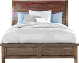 Consider the Mango king bed your gateway to stylish slumber. A subtly curved sleigh-style headboard features graceful horizontal panels, which are a beautiful counter balance to the picture frame moulding on the footboard. The result is a bed that's big on elegance, with a transitional feel that combines both rustic and contemporary touches. Made of wood solids and mango veneers, the golden caramel finish features light distressing that lends the finishing touch. Mattress and foundation (if required) sold separately. Bed shown is queen size.