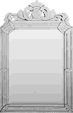 The Mansard is an elegant Venetian-inspired mirror featuring etched glass, facet details, topped by a whimsical crown motif.