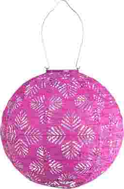 Bring vibrant color and festive energy to your outdoor space with the Mansduff Purple Outdoor Solar Lantern. Inspired by the intricate beauty of traditional papel picado, these 12in round solar lanterns feature bold geometric patterns and come in four rich, saturated colors that instantly elevate any backyard, patio, or garden. With no wiring or electricity required, these eco-friendly, solar-powered lanterns charge by day and automatically illuminate at dusk, making it easy to enjoy beautiful, maintenance-free lighting every evening. Partial assembly may be required.