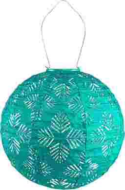 Bring vibrant color and festive energy to your outdoor space with the Mansduff Turquoise Outdoor Solar Lantern. Inspired by the intricate beauty of traditional papel picado, these 12in round solar lanterns feature bold geometric patterns and come in four rich, saturated colors that instantly elevate any backyard, patio, or garden. With no wiring or electricity required, these eco-friendly, solar-powered lanterns charge by day and automatically illuminate at dusk, making it easy to enjoy beautiful, maintenance-free lighting every evening. Partial assembly may be required.