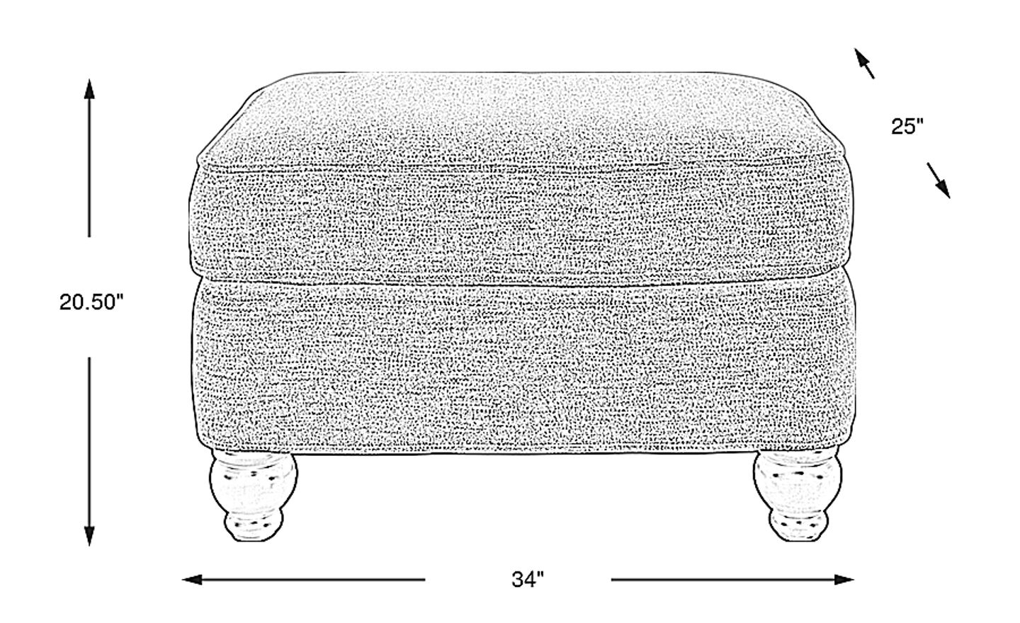 For optimal comfort and a balanced look, the top of an ottoman should be within one to two inches of your sofa's seat height. This piece stands at 20.5 inches tall, which aligns perfectly with standard traditional sofas. Following the "two-thirds rule," its 34-inch width is ideal for sofas ranging from 50 to 80 inches long, ensuring the footrest is functional for multiple sitters without overcrowding your floor plan.
