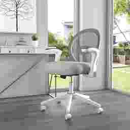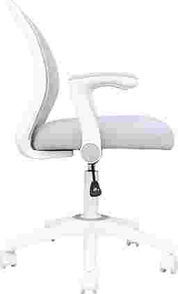 The Manso task chair's ergonomic design places a premium on comfort and convenience. The backrest features a horizontal mesh, upholstered in breathable linear grey mesh, while the seat is cushioned with foam and clad in soft touch grey fabric for enhanced comfort. With a pneumatic gas lift seat height adjustment, changing positions is a breeze. The chair comes with flip-up arms for effortless maneuvering, allowing them to be conveniently moved out of the way. Supporting individuals up to 275 lbs, this chair is designed for both comfort and practicality. Customer assembly is required.