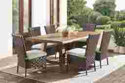 Mantra Brown 7 Pc 78 In. Wood Outdoor Dining Set With Ash Cushions