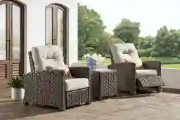 This set is ideal for social settings, as it includes two matching recliners with padded arms and tapered legs that offer a polished, indoor-furniture look for your patio. The combination of supportive tufted backs and the ability to recline makes these chairs perfect for everything from morning coffee to long evening conversations. For a cohesive layout, they pair exceptionally well with a small outdoor side table or an outdoor rug to define the seating area.