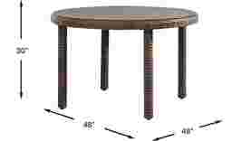Laughter lingers, conversations flow and togetherness thrives around the Mantra dining table's lavish and inviting looks. A powder-coated aluminum frame wrapped in all-weather wicker brings rich brown color and irresistible tropical style in a unique wide weave design. A handsome round lay-on glass top provides a stable surface for drinks and dishes and a view of the unique wide weave design beneath.