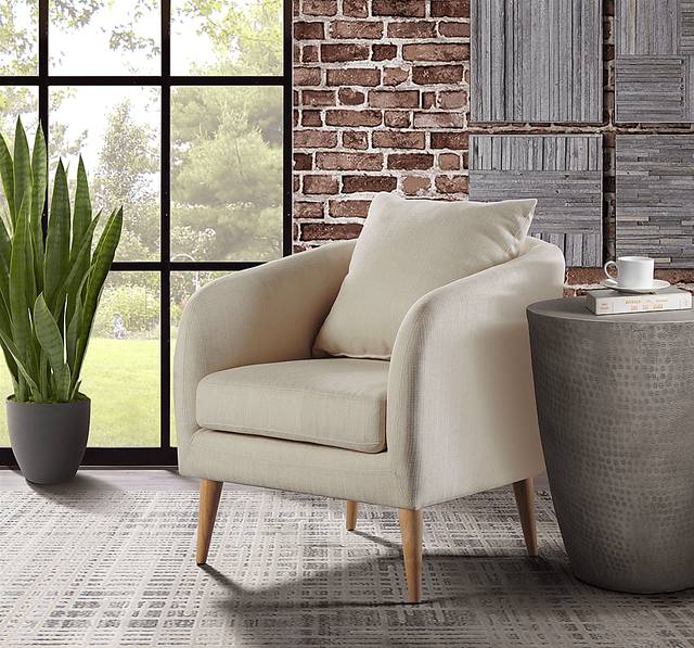 The Maoki II accent chair is the perfect addition to your home. Upholstered in a soft rich polyester fabric and set on four sturdy wooden legs. Solidly constructed of plywood for years of durability. This accent chair combines contemporary style with a mid-century look. With a curved silhouette perfect for lounging in comfort. Customer assembly required.